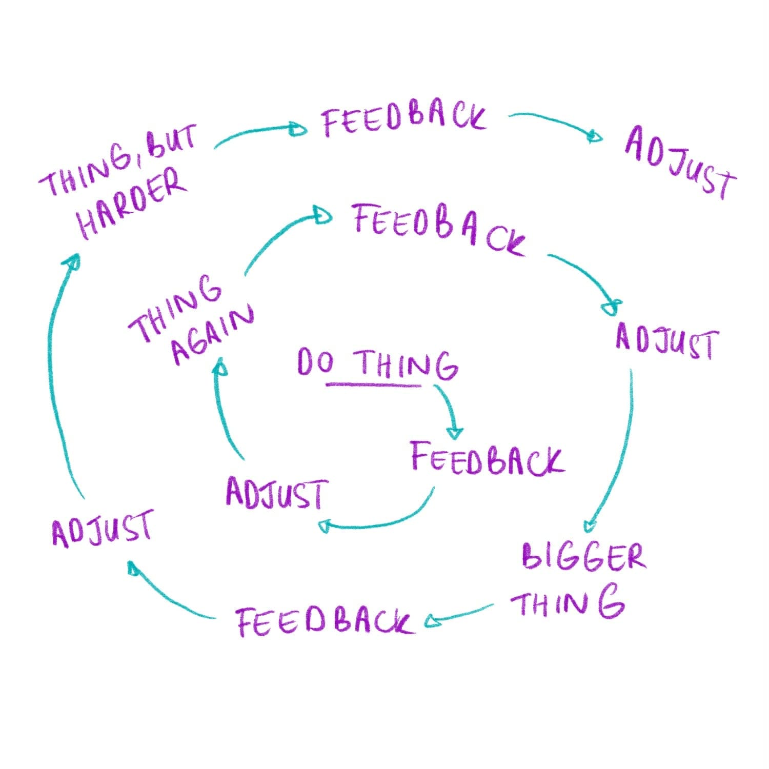 Once youâve finished making/doing the new Thing, make notes on it, choose your next action, do the next Thing. With time, as you widen the scope of your goals and gain fluency in your tasks, your progress should look like that detailed feedback loop.